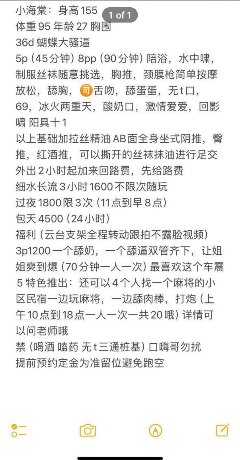 狼友们注意了,最近有多人反应这个多妹(小海棠)诈骗定金。这个婊子之前还搞活动,限时优惠100,还在自